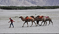 Cross the world’s highest motorable road at Khardongla at 18,380 feet into the Nubra, literally meaning the valley of flowers. Famously known as Treaty Road, this is the ancient caravan route to Central Asia where you can still see double humped Bactrian camels ride the sand dunes, and with their cute unruly mop of hair.